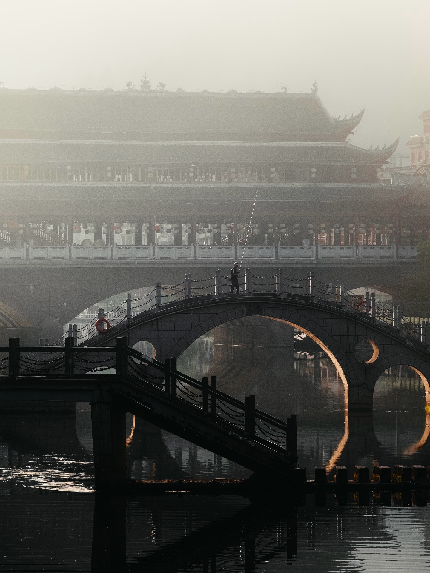 Ăn trưa xong, có xe buýt đưa đón vào trung tâm “Thành Cổ Phượng Hoàng” là một thành cổ nằm ở phía tây tỉnh Hồ Nam, được nhà văn Tân Tây Lan Alley Rewi khen ngợi là nơi đẹp nhất Trung Quốc, với những ngôi nhà cổ áp sát vào núi và soi mình xuống dòng Đà Giang. Đặc biệt với những cây cầu nối hai bờ của dòng sông là nét đặc biệt của thị trấn này. Có đến cả chục cây cầu bắc qua con sông nhỏ, từ những cây cầu đá có tuổi đời bằng với khu thành cổ, cây cầu gỗ hình gấp khúc, cây cầu sắt cho đến cây cầu bê-tông lớn dành cho xe cơ giới qua lại. Với những thắng cảnh nổi tiếng (Hồng Kiều, Cầu Đá Nhảy, Thành lầu Đông Môn, tháp Vạn Danh).